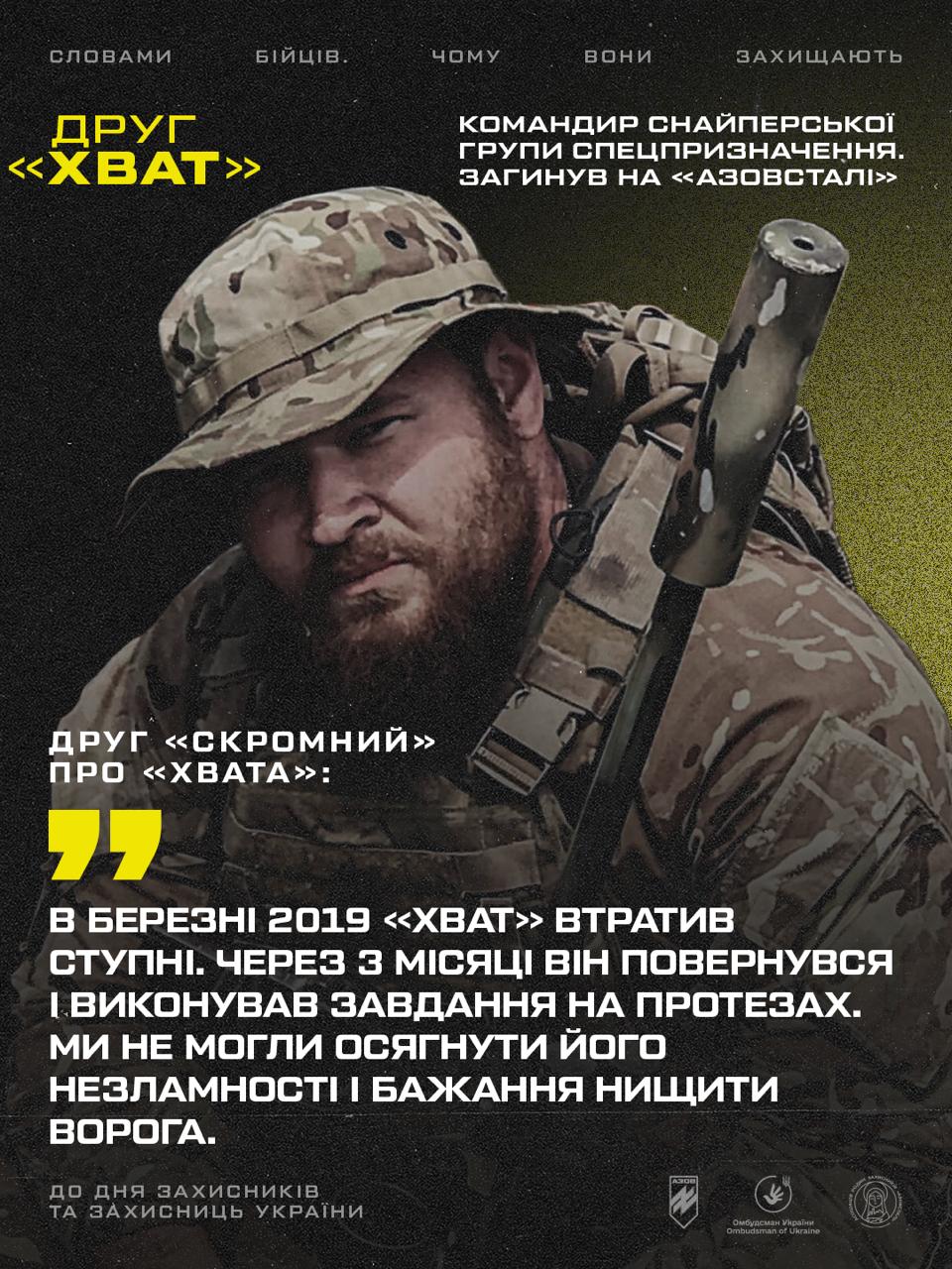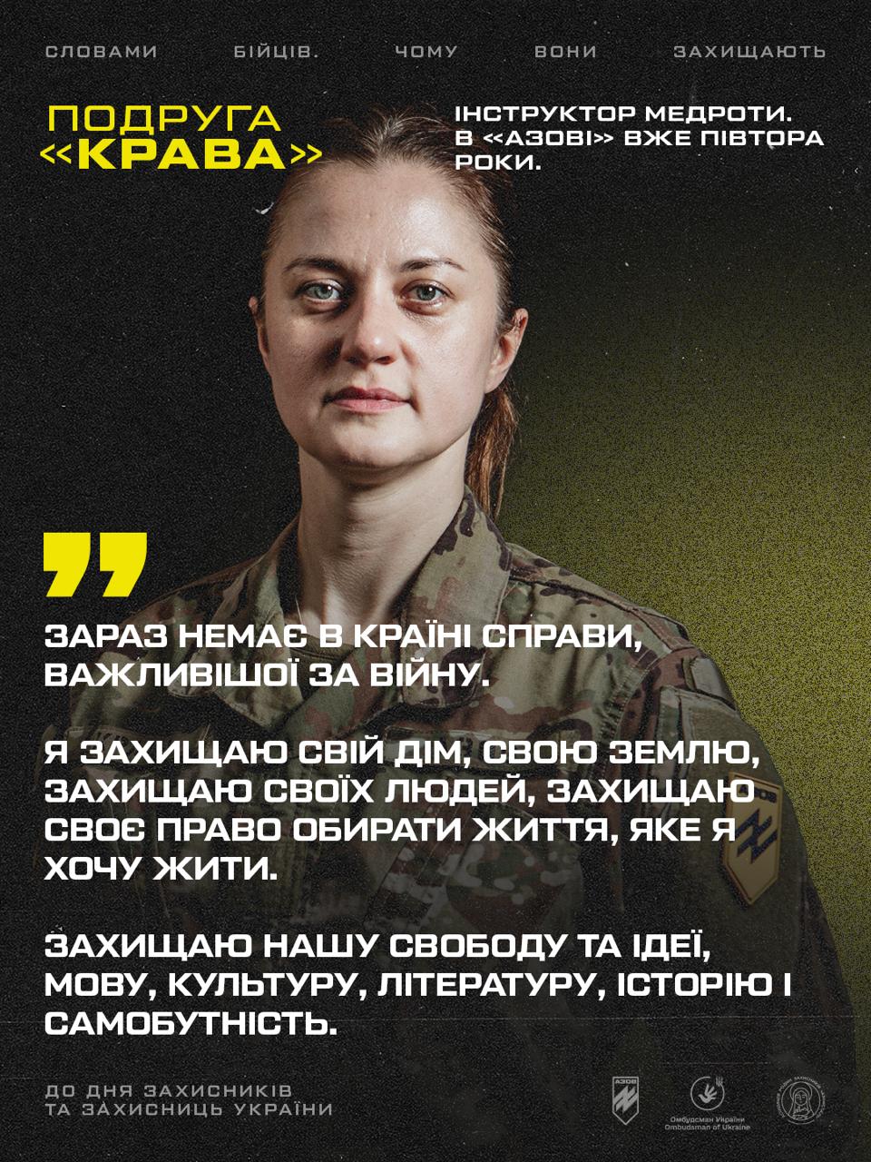 До Дня Захисників і Захисниць України «АЗОВ» спільно з Офісом Омбудсмана України та Асоціацією родин захисників «Азовсталі» підготував серію історій та цитат українських оборонців.