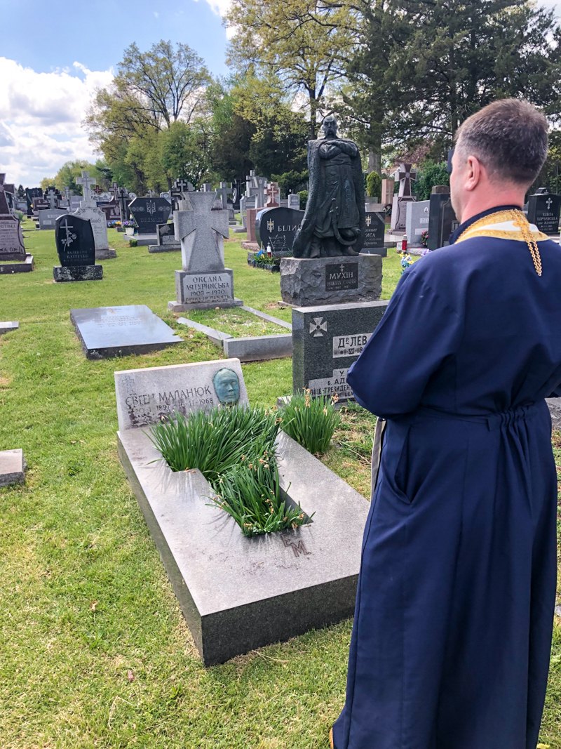 Панахида на могилі Євгена Маланюка на цвинтарі Святого Андрія. Письменник помер 56 років тому в США / Фото: Аскольд Лозинський