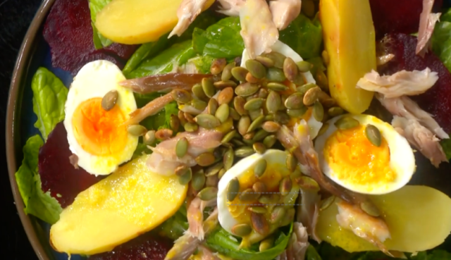 Рецепт оригінального салату зі скумбрії та печеної картоплі