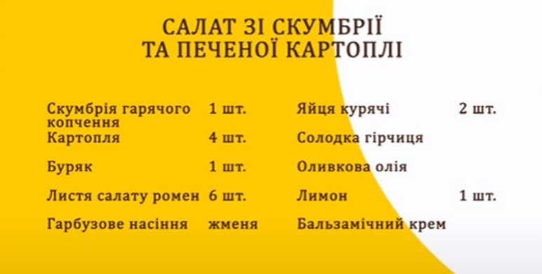 Сьогодні кулінарний експерт програми “Ранок Вдома” на каналі “Дім” Чаба Бакош запропонував зробити салат зі скумбрії та печеної картоплі. Ця страва має багато вітамінів і мікроелементів, які необхідні для здоров’я, а головне — вона надзвичайно смачна та проста у приготуванні. Зберігайте рецепт і обовʼязково готуйте його на своїй кухні.