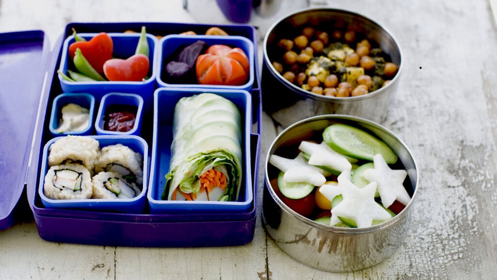 Типові обіди мають бутерброди з індичкою, морквяні палички та фрукти, хоча оброблені продукти, такі як піца та курячі нагетси, залишаються поширеними у шкільних меню.