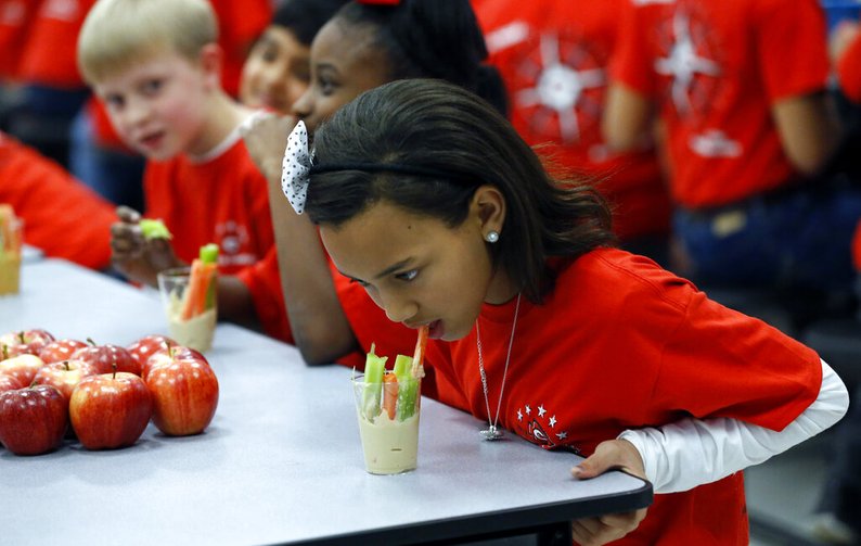 Учениця початкової школи Нортсайд, 9-річна Джордін Нельсон, куштує моркву в хумусі, 27 лютого 2013 рік. AP/Рохеліо В. Соліс