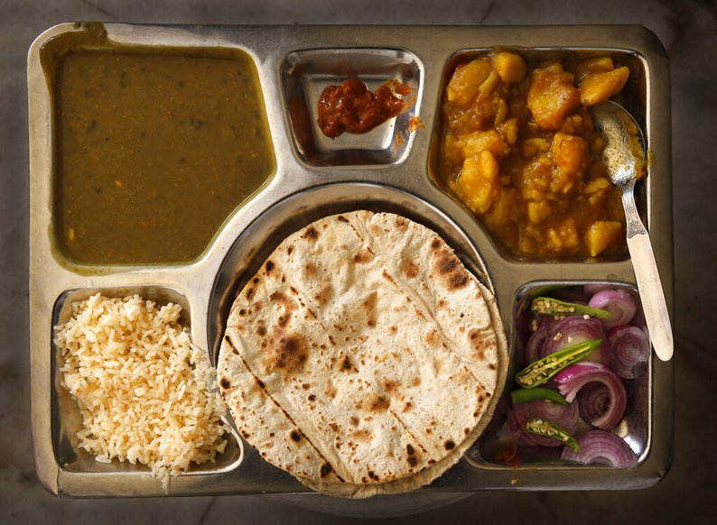 Індійський хліб, рис, сочевиця, овочі та мариновані огірк. Нью-Делі, Індія. AP/Manish Swarup