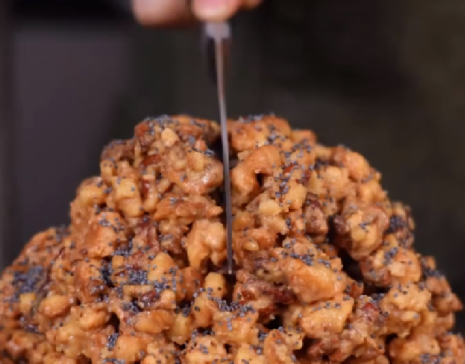 Викладаємо горкою в тарілку. Формуємо Говерлу або форму подібну Мурашнику. Посипаємо для реалістичності маком і відставляємо охолоджуватись. Смачного!