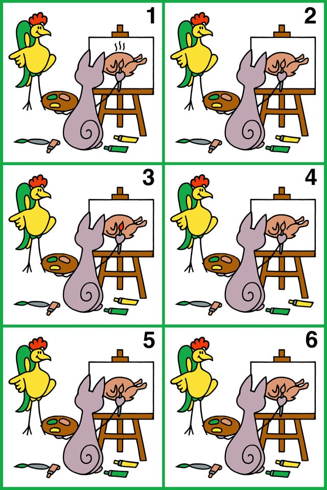 Перед вами шість схожих картинок. Але абсолютно однакові з них лише дві. Знайдіть їх!